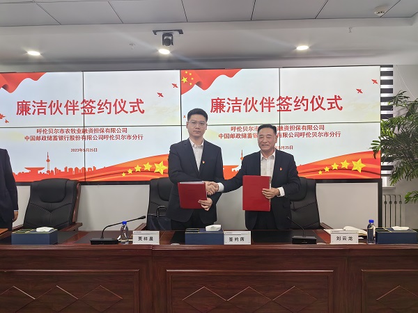 隨后雙方簽署《廉潔伙伴共建協(xié)議》。根據協(xié)議,雙方深入推進清廉金融文化建設,加強雙方在廉潔領域的合作共建,通過互相承諾、互相監(jiān)督,促進建立廉潔、誠信、共贏的合作關系,共同助力呼倫貝爾市農牧業(yè)的高質量發(fā)展。